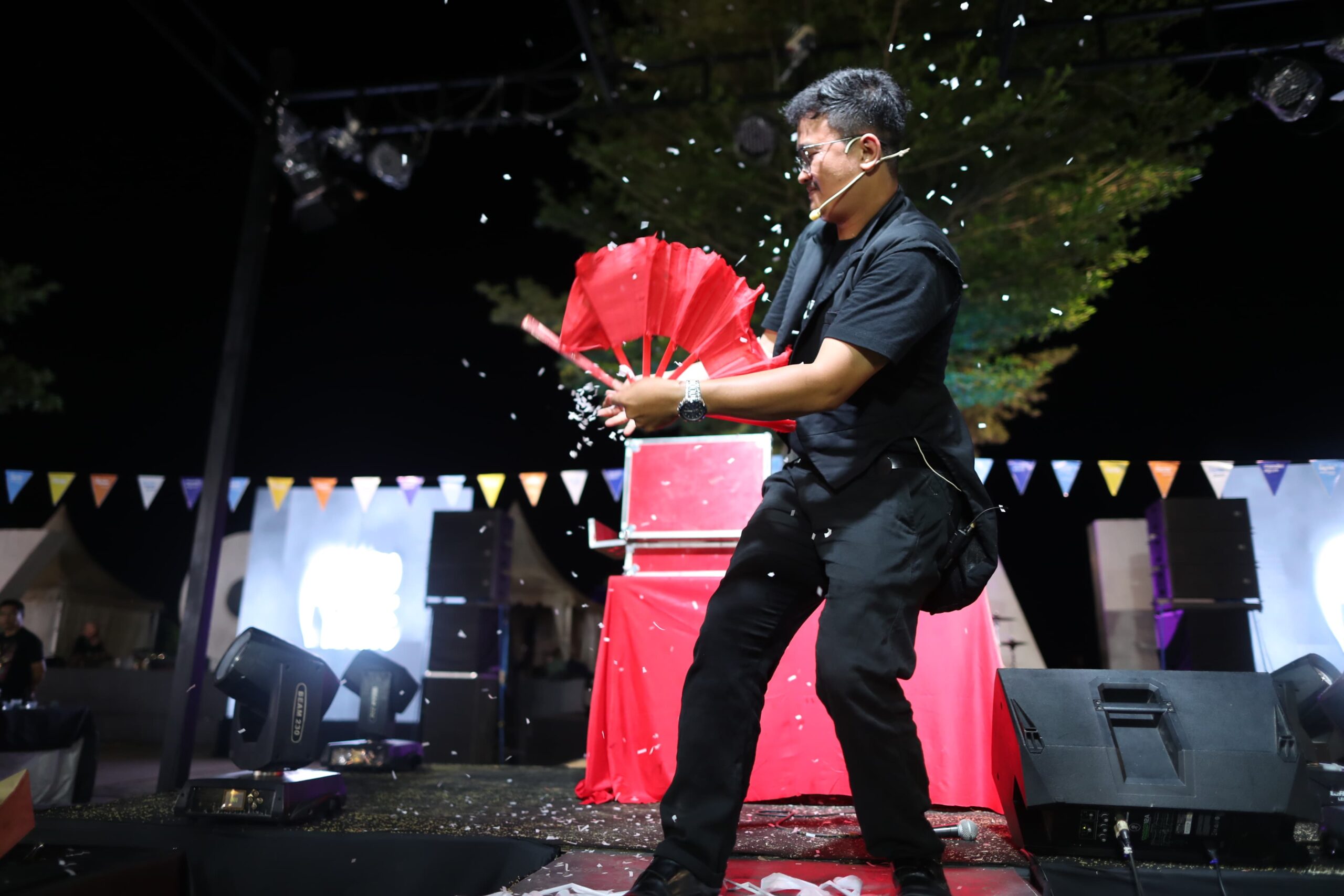 MAKASSAR, MEDIABARU.CO.ID — Salah satu hiburan yang dinikmati para pengunjung zona 5, yakni sulap. Aksi Arigato Magic cukup menarik perhatian pengunjung zona 5 yang sedang asik menikmati jajanan.