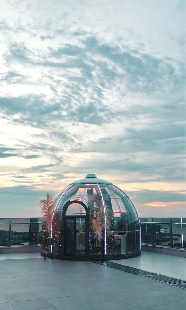 Terletak 31 Altitude yang merupakan di rooftop tertinggi di kota Makassar, Dome in the Sky menghadirkan momen istimewa bagi para tamu yang ingin merayakan hari spesial, Mulai dari suasana santai bersama sahabat melalui Sky Dome Picnic, makan malam romantis, hingga pengalaman kuliner interaktif melalui Sky Dome Fine Dining Experience. Dengan desain kubah transparan dan pencahayaan lembut, setiap sesi makan di sini terasa hangat, privat, dan menawan di tengah gemerlap panorama kota Makassar.