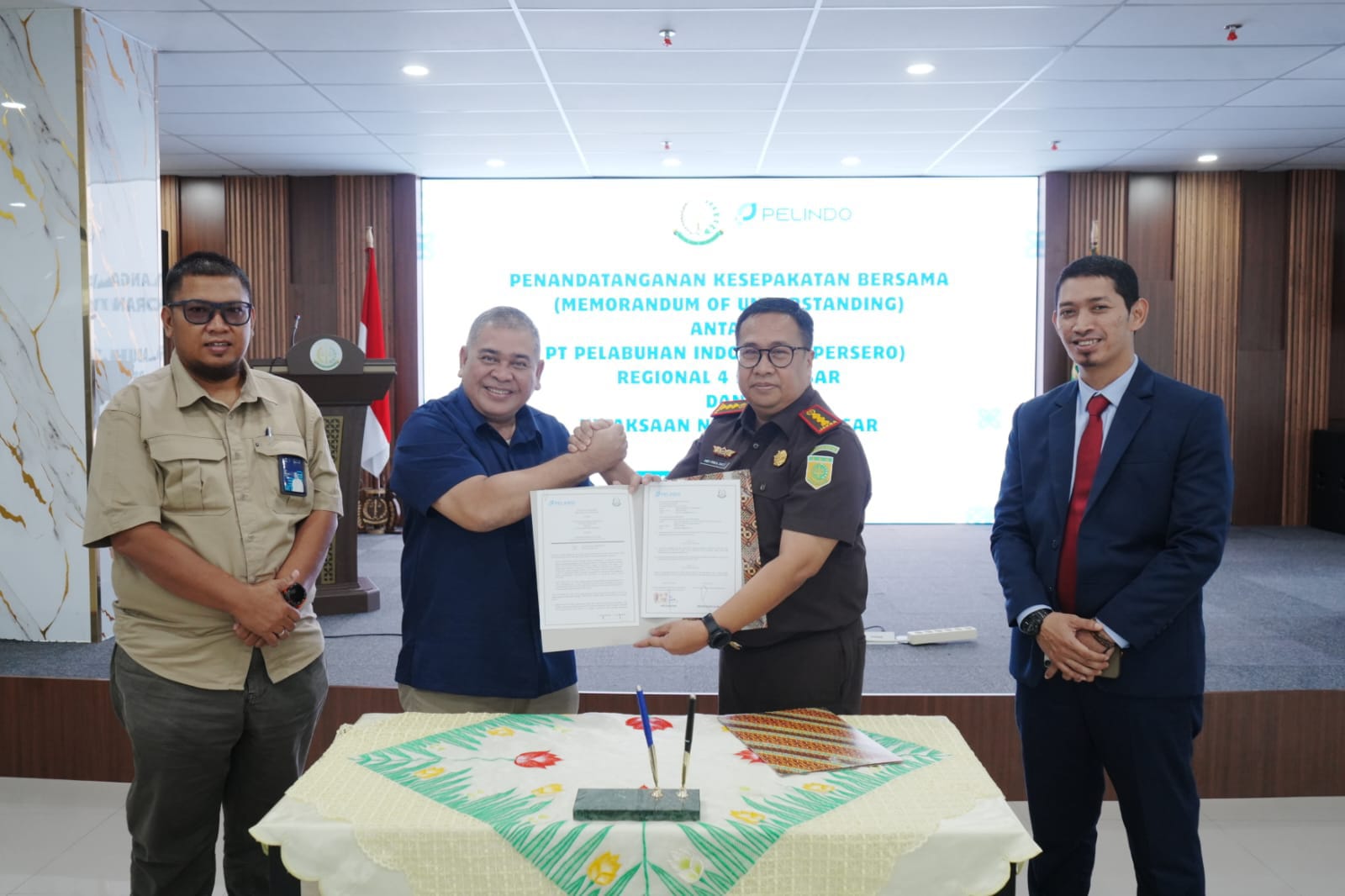 Penandatanganan MoU tersebut dilaksanakan di Makassar, Kamis (26/2/2026). Kesepakatan ditandatangani oleh General Manager Pelindo Regional 4 Makassar, Iwan Sjarifuddin, bersama Kepala Kejaksaan Negeri Makassar, Andi Panca Sakti, SH, MH, serta disaksikan jajaran pejabat di lingkungan Kejaksaan Negeri Makassar.