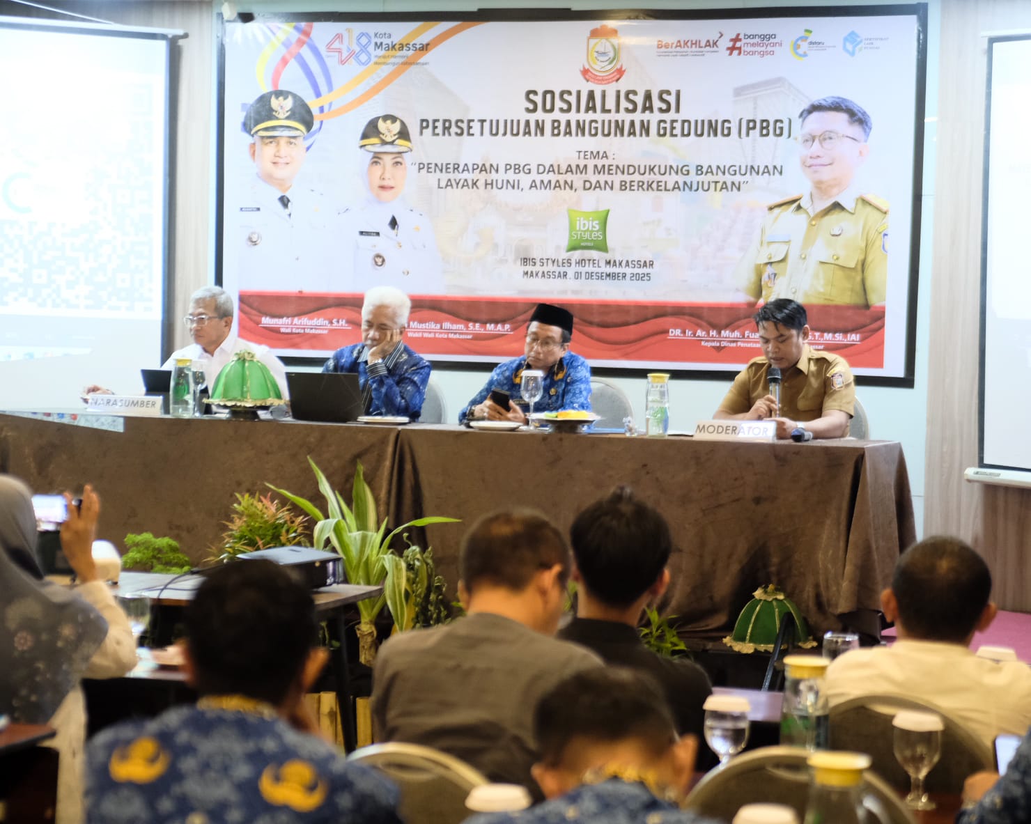 MAKASSAR, MEDIABARU.CO.ID — Dinas Penataan Ruang Kota Makassar kembali melaksanakan Sosialisasi Persetujuan Bangunan Gedung (PBG) pada Senin, 1 Desember 2025, di Hotel Ibis, Jalan Ratulangi, Makassar. Kegiatan ini mengangkat tema “Penerapan Persetujuan Bangunan Gedung (PBG) Dalam Mendukung Bangunan Layak Huni, Aman dan Berkelanjutan” dan dihadiri oleh berbagai pemangku kepentingan terkait pembangunan gedung di Kota Makassar.