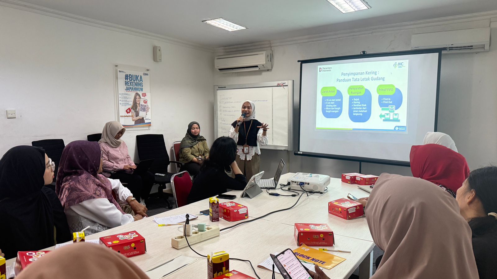 Penyuluhan ini menghadirkan narasumber dr. A. Arsyi Adlina PS, Sp. GK, Dokter Spesialis Gizi Klinik, serta Almam S.Tr, S.Gz, Ahli Gizi dari RSOJ Pertamina Royal Biringkanaya. Keduanya memberikan materi mengenai pentingnya pemenuhan gizi dalam makanan ringan serta bagaimana pelaku UMKM dapat menerapkan prinsip gizi seimbang dalam pengolahan dan pengembangan produk.