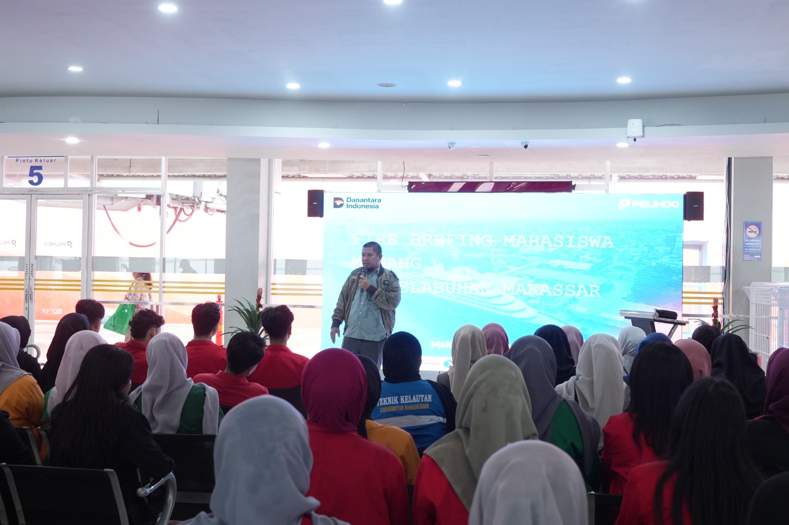Fire briefing yang dilaksanakan di Terminal Penumpang Pelabuhan Makassar, Kamis (5/2/2026) ini diikuti oleh para mahasiswa magang dari berbagai perguruan tinggi yang saat ini menjalani praktik kerja di Pelindo Regional 4. Kegiatan tersebut bertujuan memberikan pemahaman dasar terkait potensi risiko kebakaran di area pelabuhan, prosedur tanggap darurat, serta langkah-langkah penyelamatan diri apabila terjadi situasi darurat di lingkungan kerja.